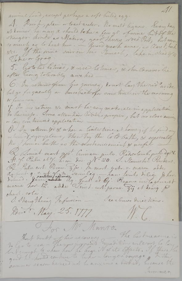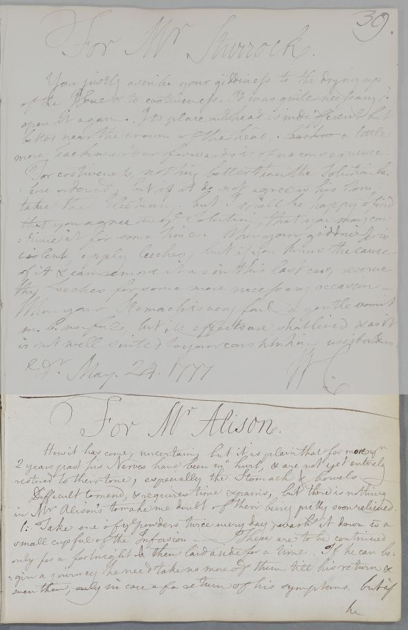 [ID:4069] From: Dr William Cullen (Professor Cullen) / To: Mr Alison / Regarding: Mr Alison (Patient) / 25 May 1777 / (Outgoing)