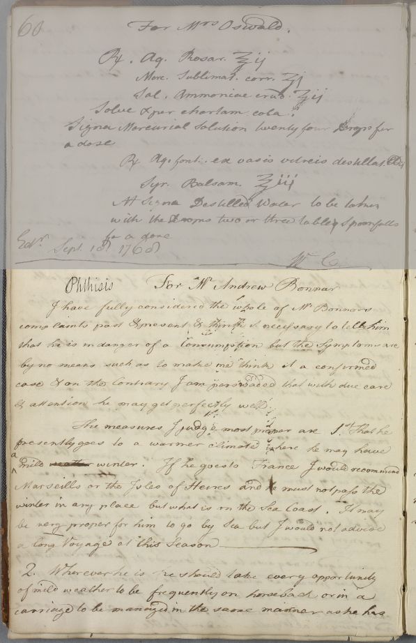 [ID:408] From: Dr William Cullen (Professor Cullen) / To: [ADDRESSEE UNKNOWN] / Regarding: Mr Andrew Bonnar (Patient) / 29 September 1768 / (Outgoing)