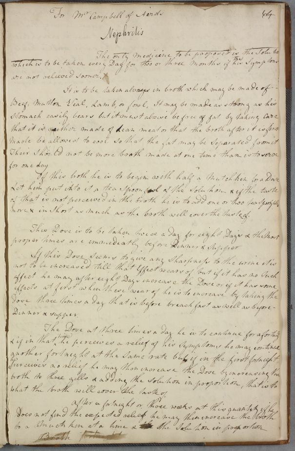 [ID:410] From: Dr William Cullen (Professor Cullen) / To: [ADDRESSEE UNKNOWN] / Regarding: Mr Campbell of Airds (Patient), Mr Muirhead (Patient) / 18 October 1768 / (Outgoing)
