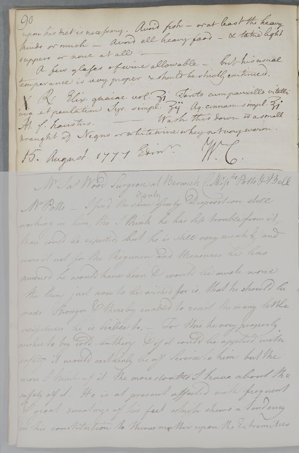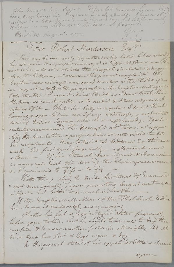 [ID:4107] From: Dr William Cullen (Professor Cullen) / To: Dr / Regarding: Mr Robert Henderson (Patient) / 15 August 1777 / (Outgoing)