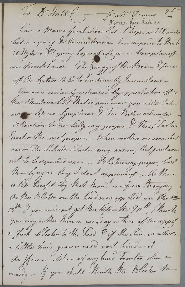 [ID:4110] From: Dr William Cullen (Professor Cullen) / To: Dr Hall / Regarding: Mrs Travers (Patient) / August? 1787? / (Outgoing)