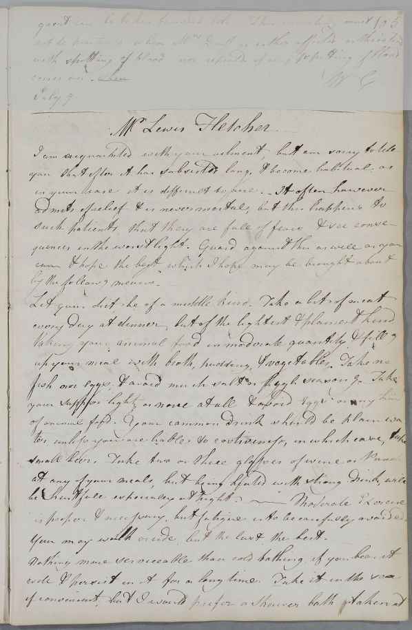 [ID:4117] From: Dr William Cullen (Professor Cullen) / To: Dr / Regarding: Mr Lewis Fletcher (Patient) / 26 August 1777 / (Outgoing)