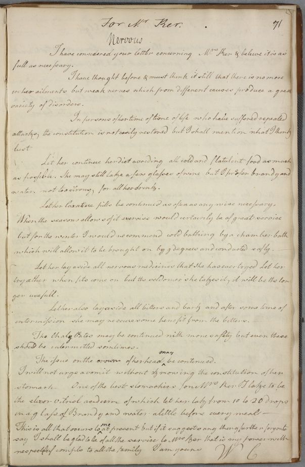 Let her lay aside all nervous medicines that she has ever tryed. Let her