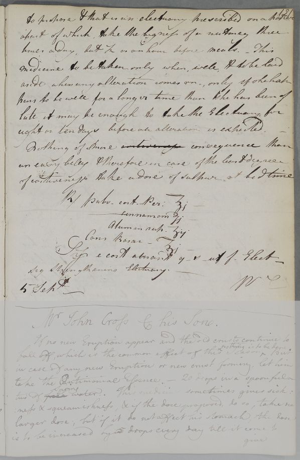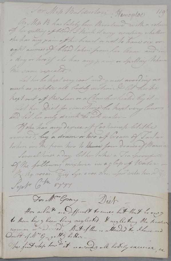 [ID:4130] From: Dr William Cullen (Professor Cullen) / To: [ADDRESSEE UNKNOWN] / Regarding: Mrs Gray (Patient) / 5 September 1777? / (Outgoing)