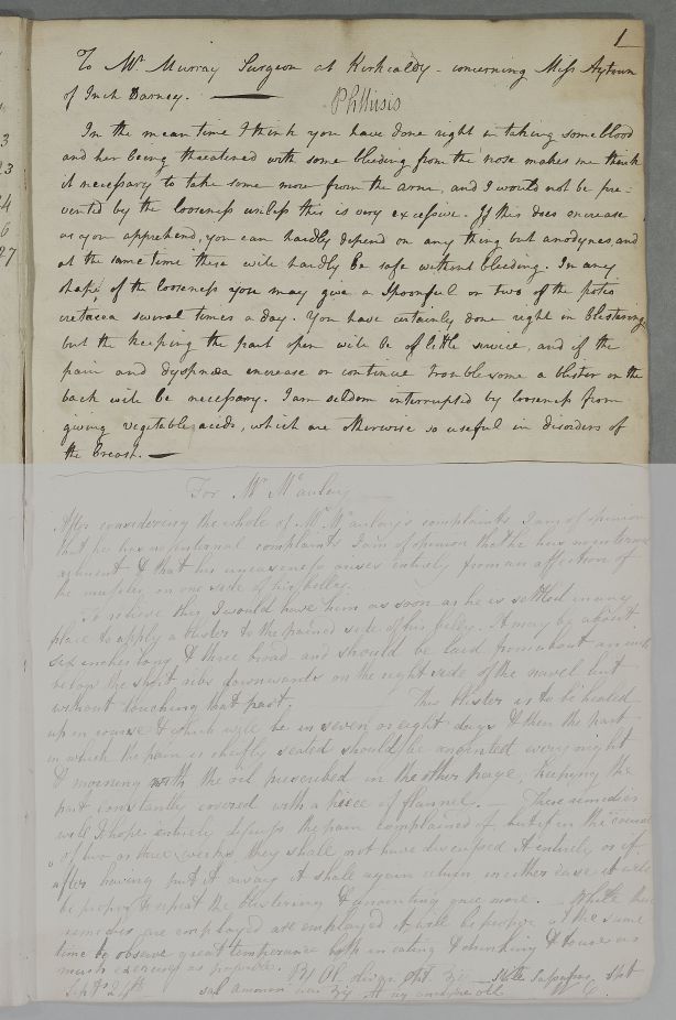 Reply, 'To Mr Murray Surgeon at Kirkcaldy, concerning Miss Aytoun of Inch Darney'