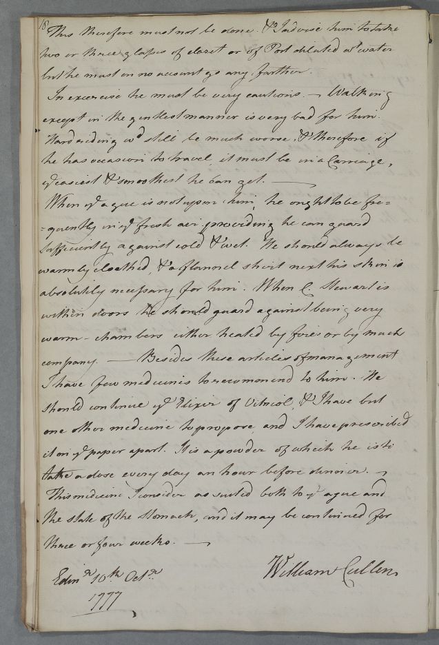 [ID:4168] From: Dr William Cullen (Professor Cullen) / To: [ADDRESSEE UNKNOWN] / Regarding: Captain Stewart (Patient) / 10 October 1777 / (Outgoing)