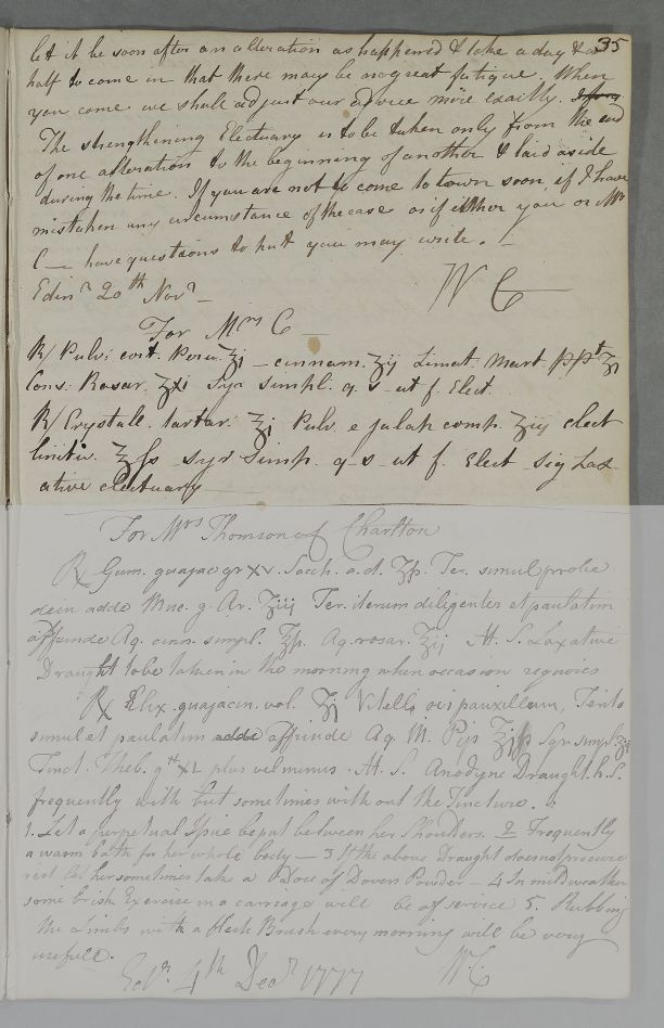 [ID:4190] From: Dr William Cullen (Professor Cullen) / To: Mr James Cunnison (Cunison ) / Regarding: Mrs Elizabeth Cunnison (Burrell or Birrell) (Cunison ) (Patient) / 20 November 1777? / (Outgoing)