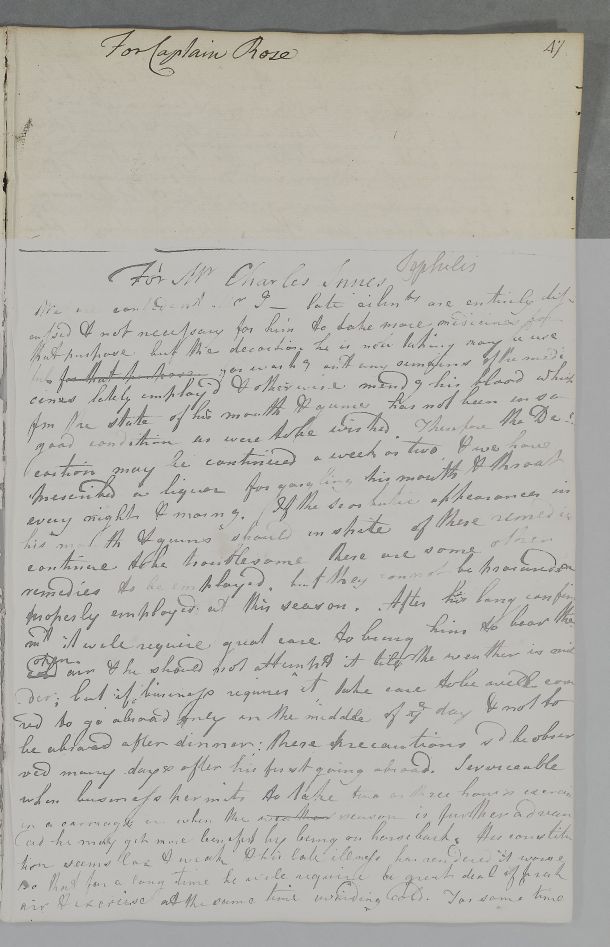 [ID:4199] From: Dr William Cullen (Professor Cullen) / To: Dr (Captain Rose's physician) / Regarding: Captain Rose (Patient) / 8? January? 1778? / (Outgoing)