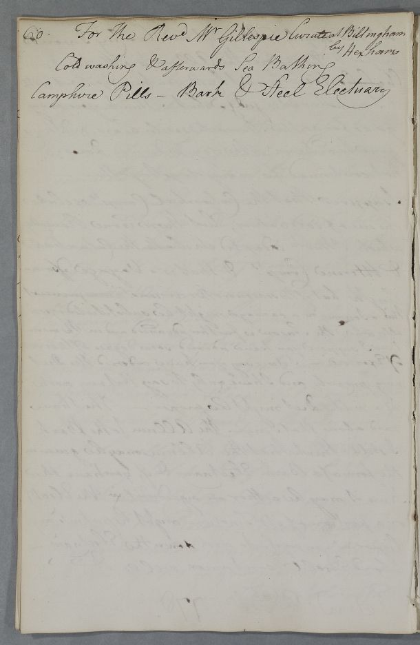 For the Revd Mr Gillespie Curate at Billingham