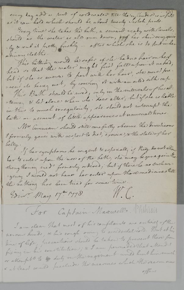 [ID:4243] From: Dr William Cullen (Professor Cullen) / To: [ADDRESSEE UNKNOWN] / Regarding: Mrs Elizabeth Cunnison (Burrell or Birrell) (Cunison ) (Patient) / 17 May 1778 / (Outgoing)