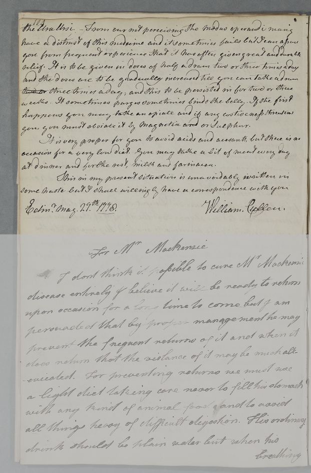 The Consultation Letters of Dr William Cullen (1710-1790) at the Royal College of Physicians of Edinburgh