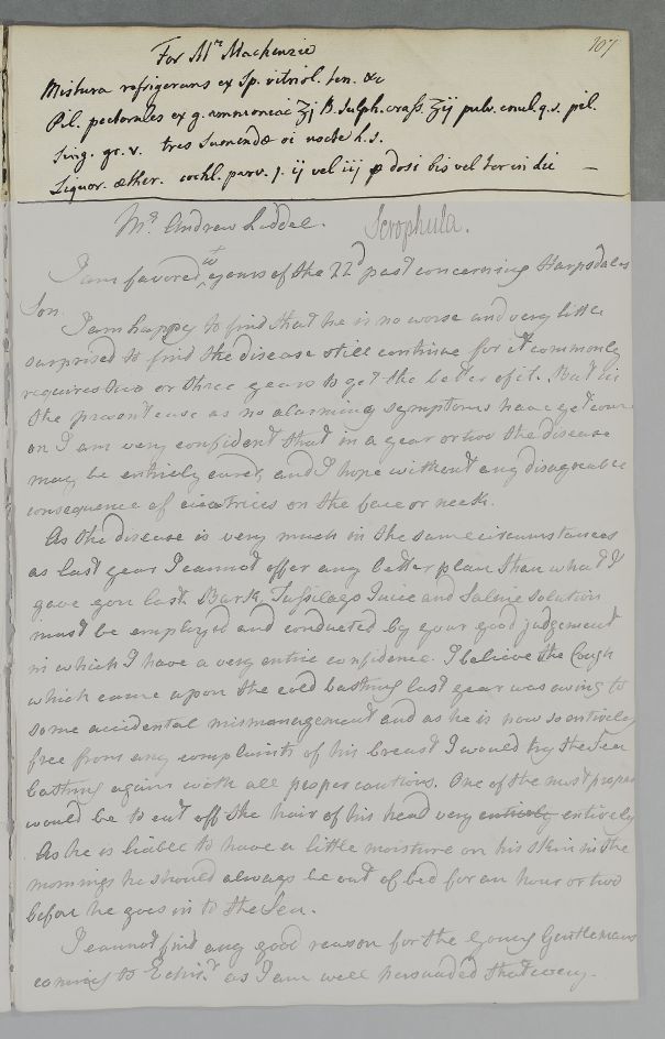 | Summary | Reply 'For Mr Mackenzie', with a recipe which is not fully formalised . Undated. Originally tentatively dated early June, but this has been refined after examining context and index to this volume. |