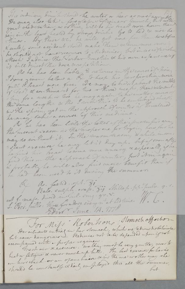 [ID:4256] From: Dr William Cullen (Professor Cullen) / To: [ADDRESSEE UNKNOWN] / Regarding: Miss B. Robertson (Patient) / 15 June 1778 / (Outgoing)