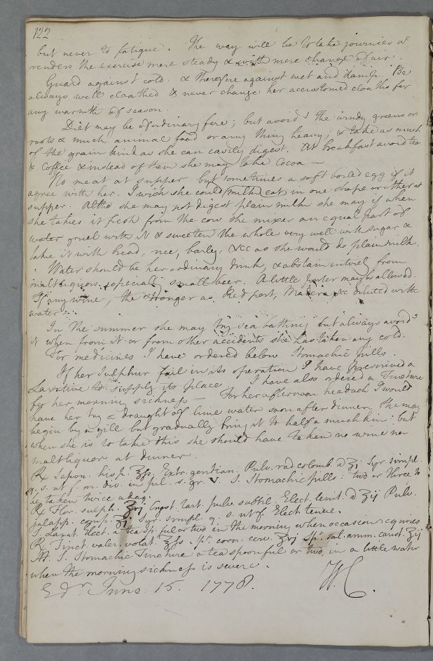 Her ailments entirely in her stomach, which are tedious & obstinate