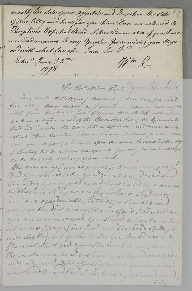 [ID:4260] From: Dr William Cullen (Professor Cullen) / To: Mr Patrick McIntyre / Regarding: Mr Patrick McIntyre (Patient) / 25 June 1778 / (Outgoing)