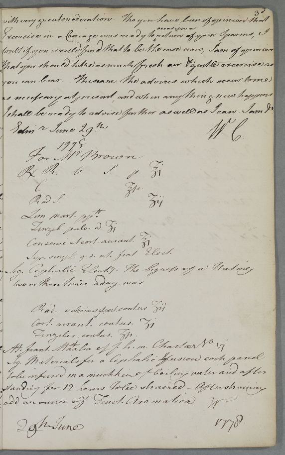 [ID:4268] From: Dr William Cullen (Professor Cullen) / To: Mr Brown / Regarding: Mr Brown (Patient) / 29 June 1778 / (Outgoing)