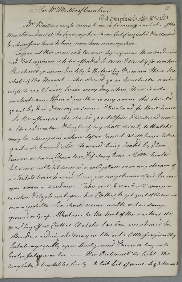 Case of Mrs Baillie of Carnbrue who has a pectoral complaint after measles. |