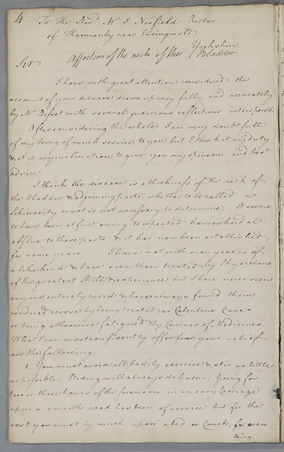 Case of the Reverend J. Nesfield diagnosed with a restricted bladder. |