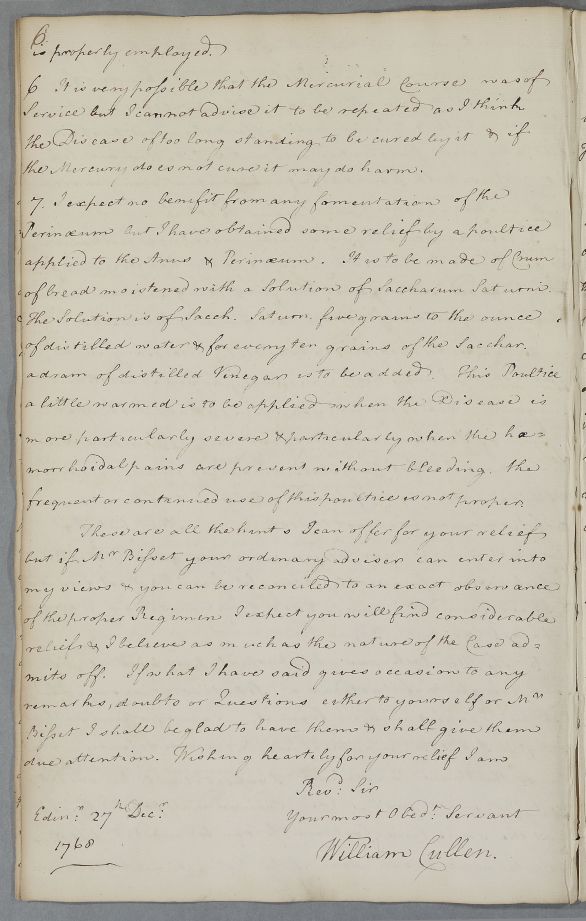 [ID:43] From: Dr William Cullen (Professor Cullen) / To: Reverend John Nesfield (Revered John Nesfield of Thormanby, Easingwold) / Regarding: Reverend John Nesfield (Revered John Nesfield of Thormanby, Easingwold) (Patient) / 27 December 1768 / (Outgoing)