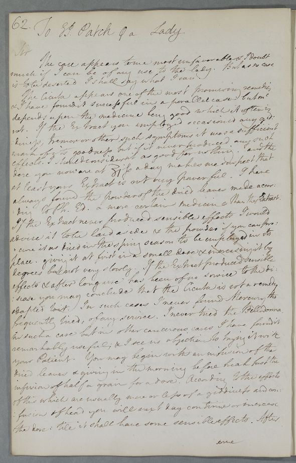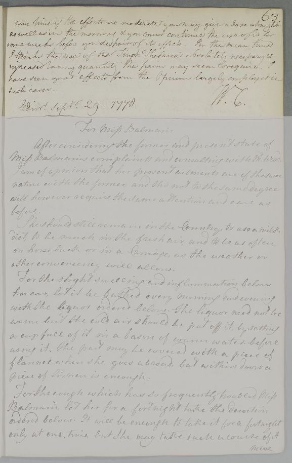 [ID:4321] From: Dr William Cullen (Professor Cullen) / To: Mr H? Patch / Regarding: Mrs (Patient) / 29 September 1778 / (Outgoing)