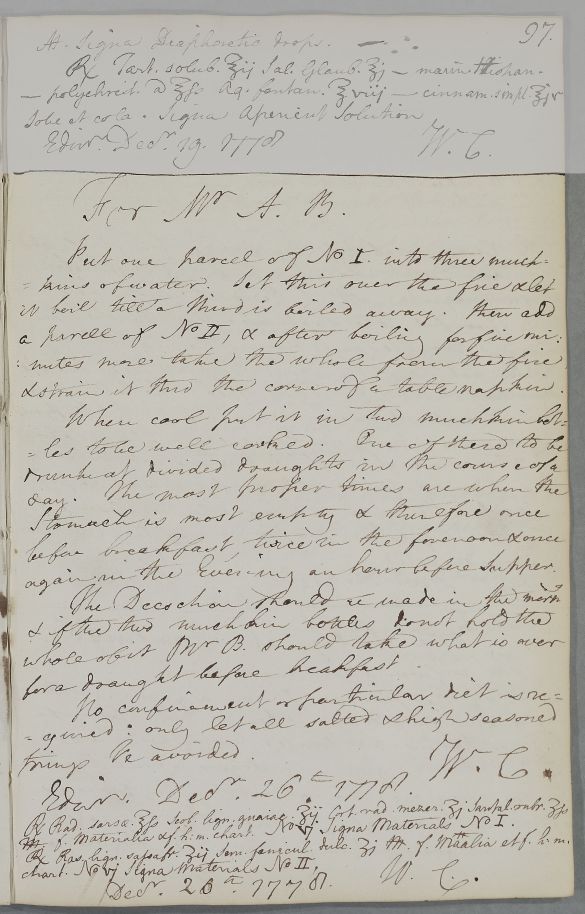 [ID:4355] From: Dr William Cullen (Professor Cullen) / To: Dr / Regarding: Mr (A.B.) (Patient) / 26 December 1778 / (Outgoing)