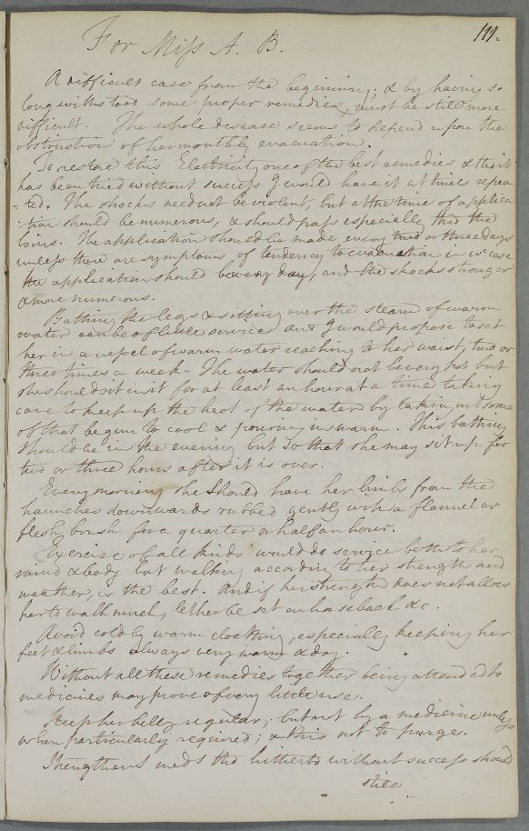 [ID:4367] From: Dr William Cullen (Professor Cullen) / To: [ADDRESSEE UNKNOWN] / Regarding: Miss (A.B.) (Patient) / 22 January 1779 / (Outgoing)