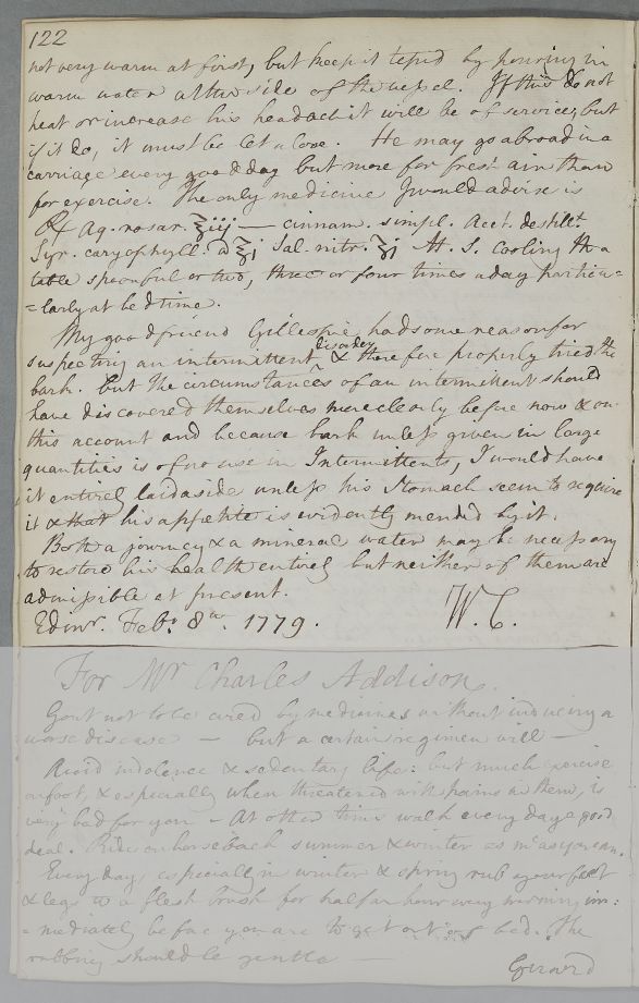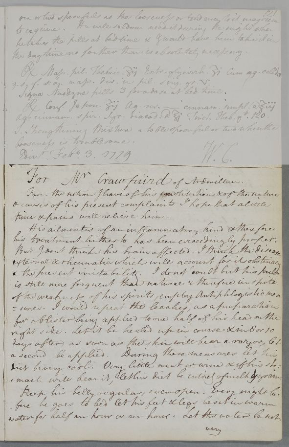 [ID:4374] From: Dr William Cullen (Professor Cullen) / To: Mr Everard McIntyre / Regarding: Mr Craufuird (Craufurd, of Ardmilland) (Patient) / 8 February 1779 / (Outgoing)