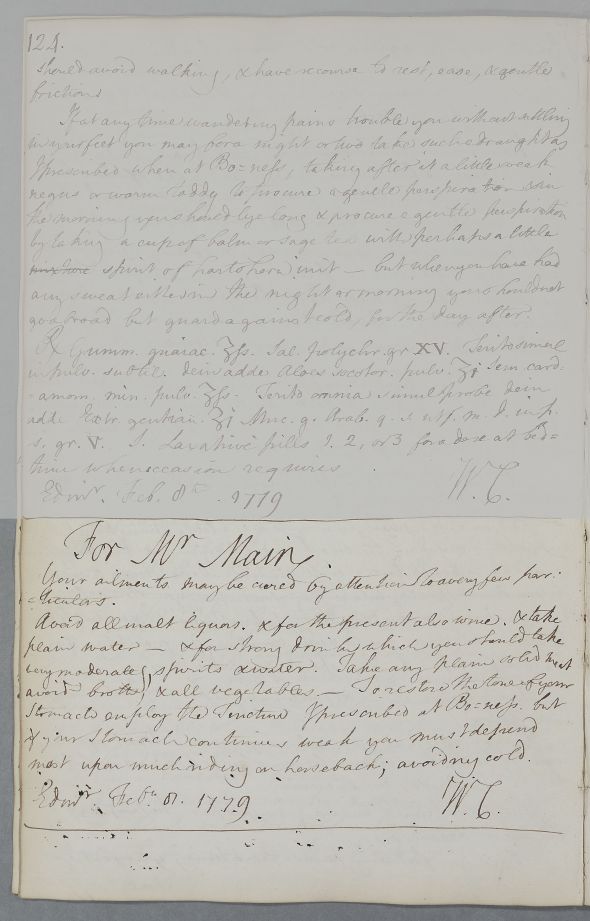 [ID:4376] From: Dr William Cullen (Professor Cullen) / To: [ADDRESSEE UNKNOWN] / Regarding: Mr Main (Patient) / 8 February 1779 / (Outgoing)