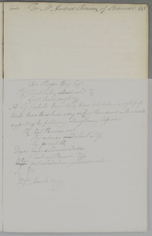 [ID:4395] From: Dr William Cullen (Professor Cullen) / To: Mr Andrew Shennan (of Stranraer) / Regarding: Mr Andrew Shennan (of Stranraer) (Patient) / March? 1779? / (Outgoing)