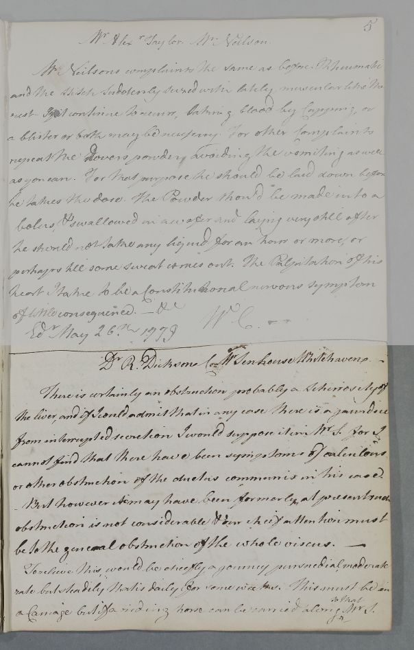 [ID:4442] From: Dr William Cullen (Professor Cullen) / To: Dr Richard Dixon (Dickson) / Regarding: Mr John Senhouse (Patient) / 28 May 1779 / (Outgoing)