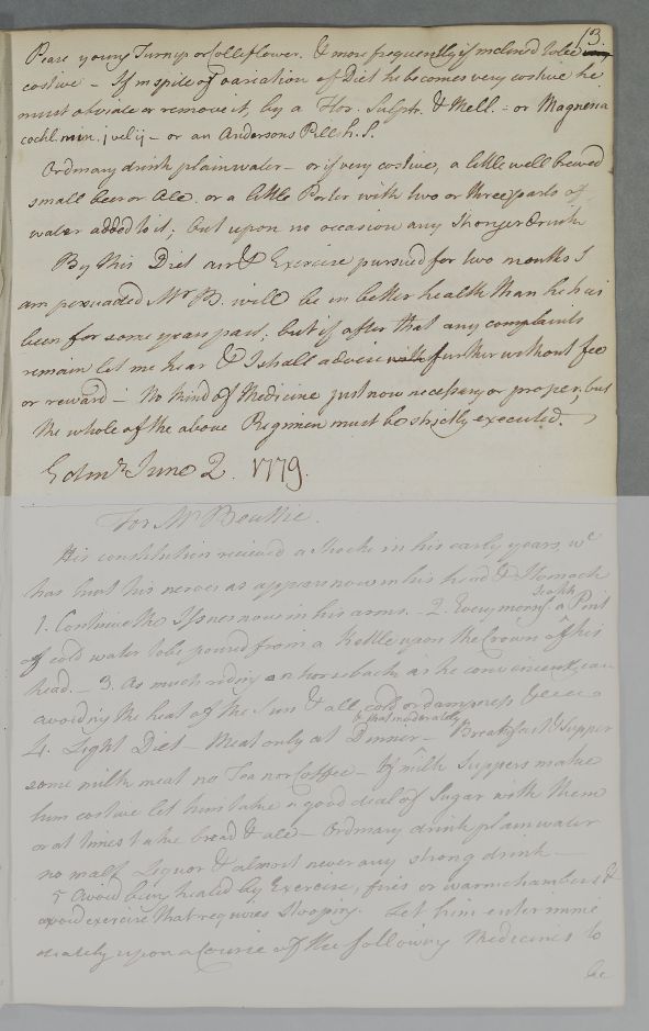 [ID:4447] From: Dr William Cullen (Professor Cullen) / To: Dr / Regarding: Mr John Buchanan (at Kirkudbright) (Patient) / 2 June 1779 / (Outgoing)