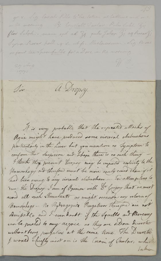 The Consultation Letters of Dr William Cullen (1710-1790) at the Royal College of Physicians of Edinburgh