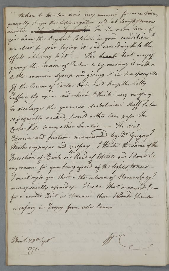 [ID:445] From: Dr William Cullen (Professor Cullen) / To: [ADDRESSEE UNKNOWN] / Regarding: [A matter not directly regarding a patient] / 28 September 1771 / (Outgoing)