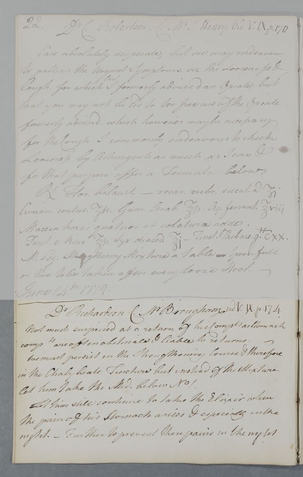 [ID:4456] From: Dr William Cullen (Professor Cullen) / To: Dr Henry Richardson / Regarding: Mr Brougham (Patient) / 15 June 1779 / (Outgoing)