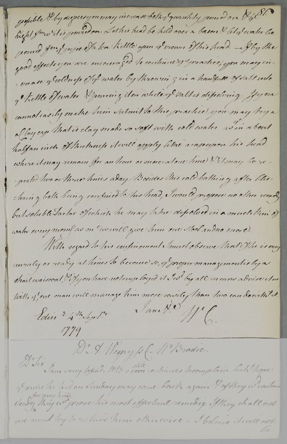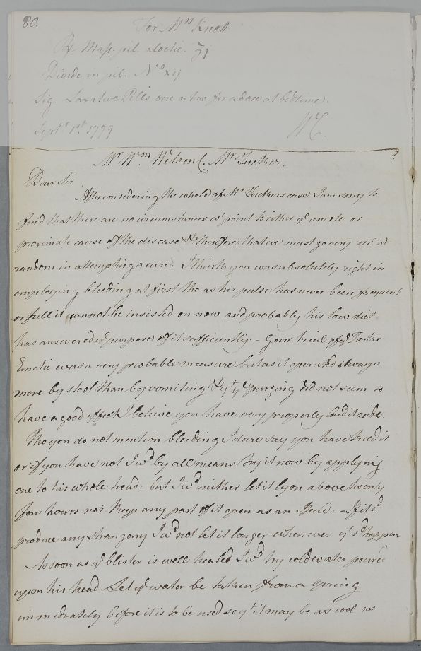 [ID:4502] From: Dr William Cullen (Professor Cullen) / To: Dr William Wilson / Regarding: Mr J Tucker (of Greenock) (Patient) / 4 September 1779 / (Outgoing)