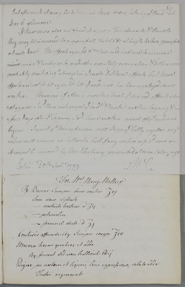[ID:4508] From: Dr William Cullen (Professor Cullen) / To: [ADDRESSEE UNKNOWN] / Regarding: Mrs Mary Mather (Patient) / 20 September 1779 / (Outgoing)