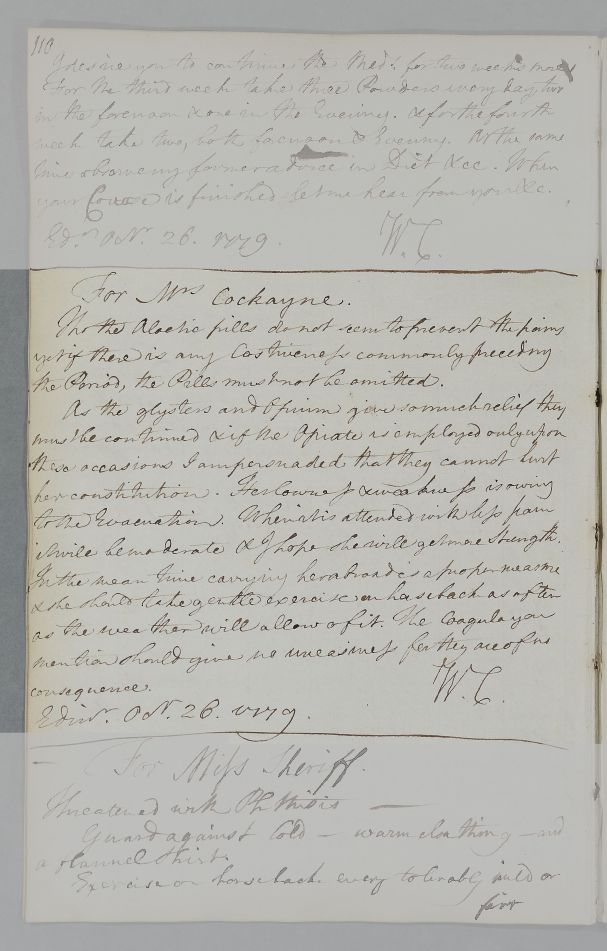 [ID:4528] From: Dr William Cullen (Professor Cullen) / To: Mr William Cokayne (Cocayne) / Regarding: Mrs Cokayne (Patient) / 26 October 1779 / (Outgoing)