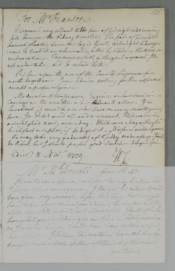 [ID:4534] From: Dr William Cullen (Professor Cullen) / To: Dr / Regarding: Mr John Pearson (Patient) / 11 November 1779 / (Outgoing)