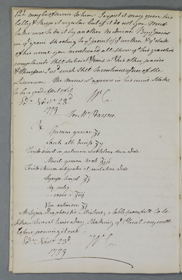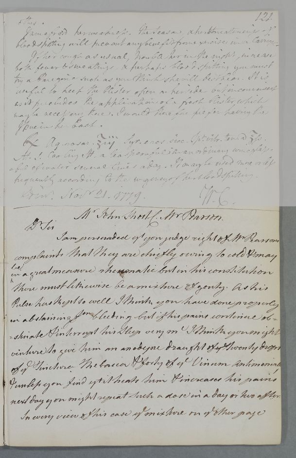 [ID:4541] From: Dr William Cullen (Professor Cullen) / To: Mr John Short / Regarding: Mr John Pearson (Patient) / 23 November 1779 / (Outgoing)