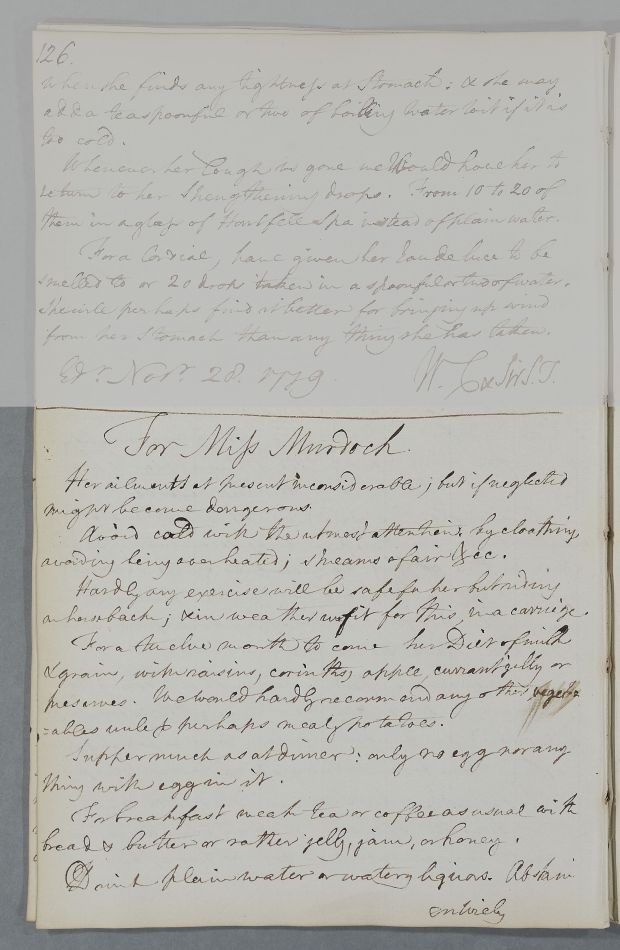 [ID:4545] From: Dr William Cullen (Professor Cullen) / To: [ADDRESSEE UNKNOWN] / Regarding: Miss Murdoch (Patient) / 28 November 1779 / (Outgoing)