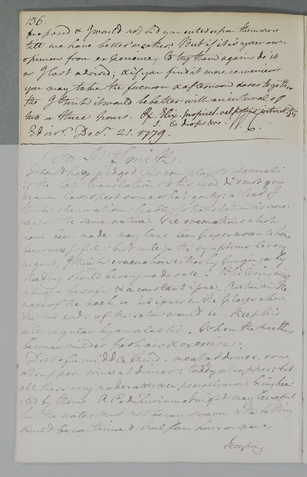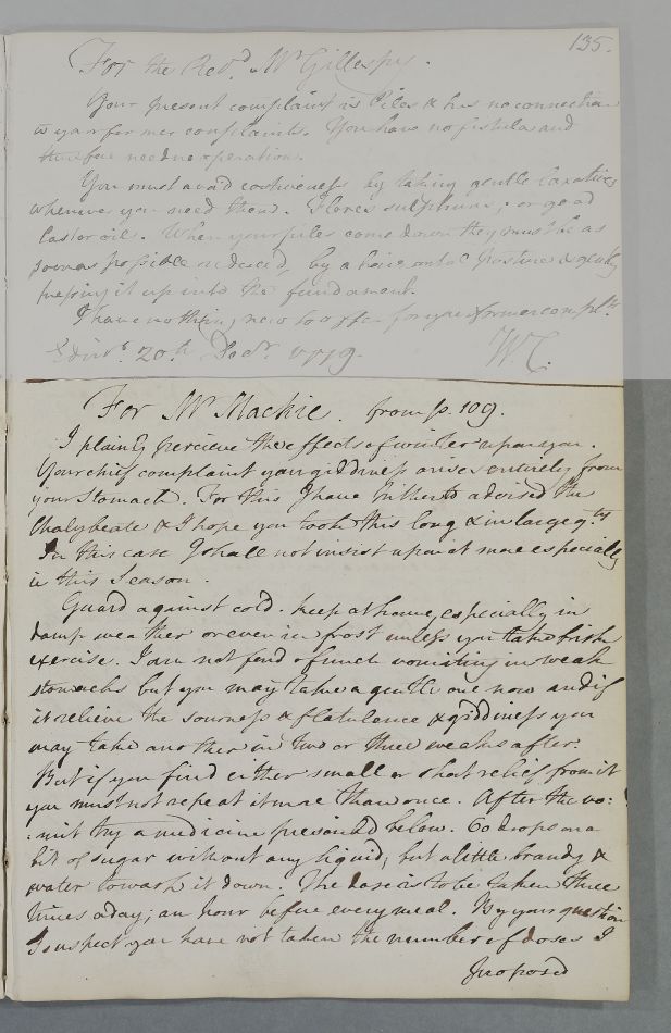 [ID:4556] From: Dr William Cullen (Professor Cullen) / To: Mr John McKie (Junior) / Regarding: Mr John McKie (Junior) (Patient) / 21 December 1779 / (Outgoing)