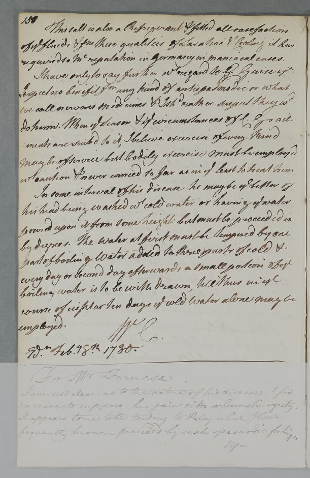 [ID:4574] From: Dr William Cullen (Professor Cullen) / To: Dr David Watson / Regarding: Captain John Guise (Patient) / 18 February 1780 / (Outgoing)
