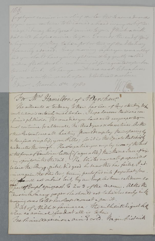 [ID:4584] From: Dr William Cullen (Professor Cullen) / To: Mr Alexander Copland (Coupland; of King's Grange) / Regarding: Mrs Ann Hamilton (Craik) (of Aldershaw) (Patient), Mr William McDowall (Macdowall, McDoual, McDowal, McDouall) (Patient) / 25 March 1780 / (Outgoing)