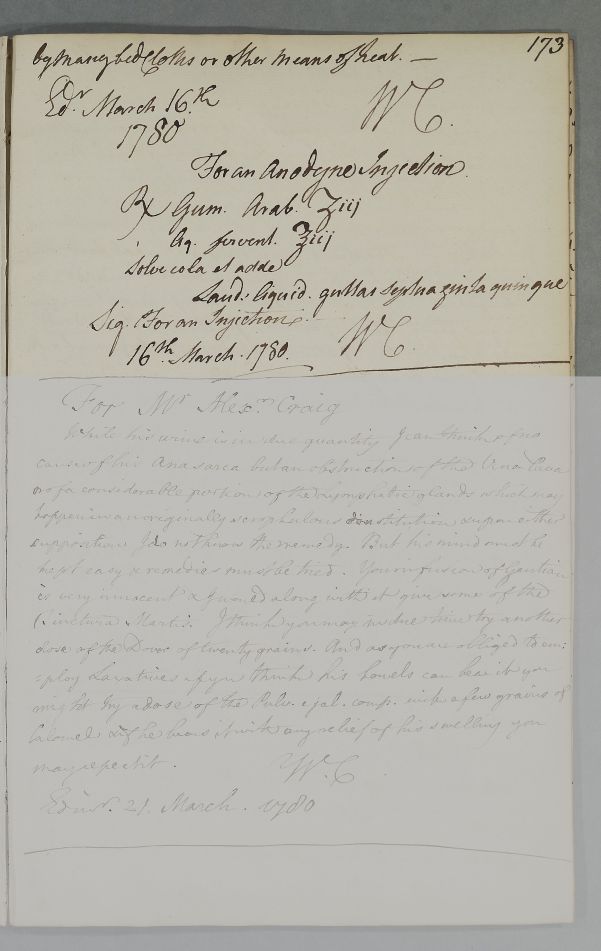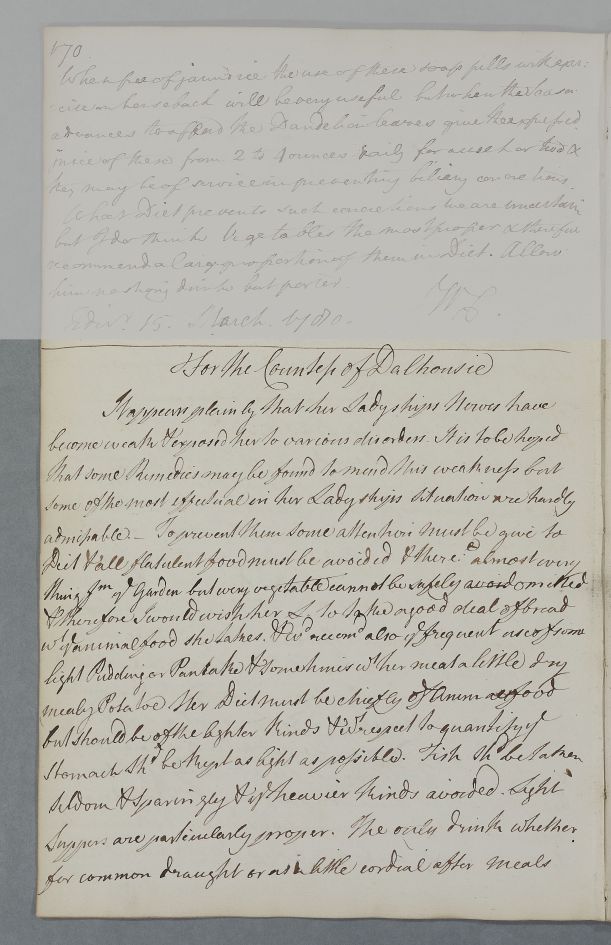 [ID:4586] From: Dr William Cullen (Professor Cullen) / To: [ADDRESSEE UNKNOWN] / Regarding: Lady Elizabeth Ramsay (Glen) (Countess of Dalhousie) (Patient) / 16 March 1780 / (Outgoing)