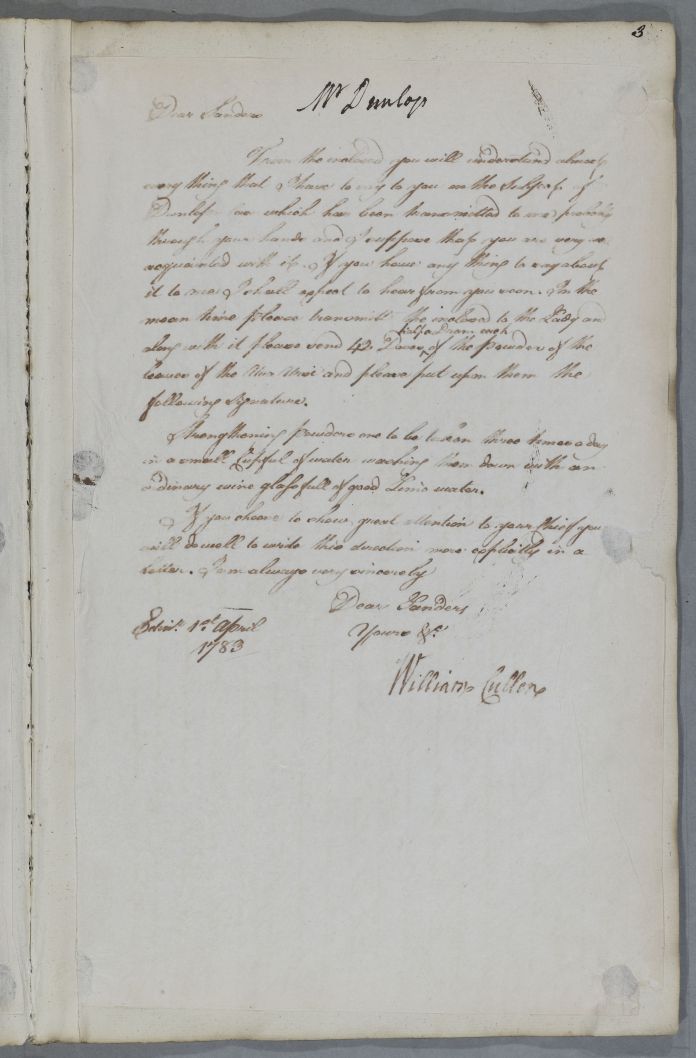 [ID:4600] From: Dr William Cullen (Professor Cullen) / To: Dr Alexander Taylor (Sanders) / Regarding: Mr John Dunlop (of Dunlop) (Patient) / 1 April 1783 / (Outgoing)