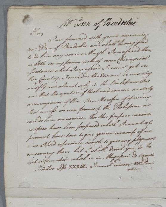 | Summary | Reply concerning the case of Mr Dun of Bendochie. |