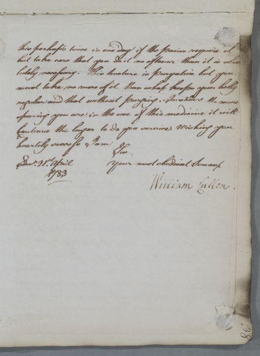 [ID:4618] From: Dr William Cullen (Professor Cullen) / To: [ADDRESSEE UNKNOWN] / Regarding: Anonymous (Patient) / 21 April 1783 / (Outgoing)