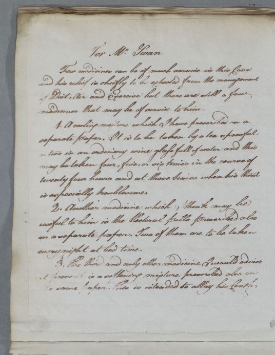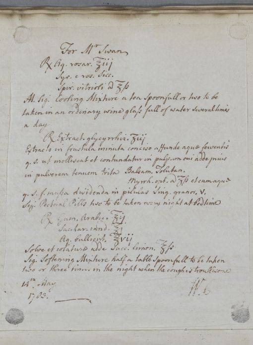 Case of Mr Swan who is advised on regimen and prescribed cooling, pectoral, and softening medicines. |