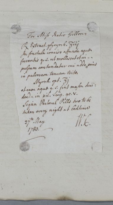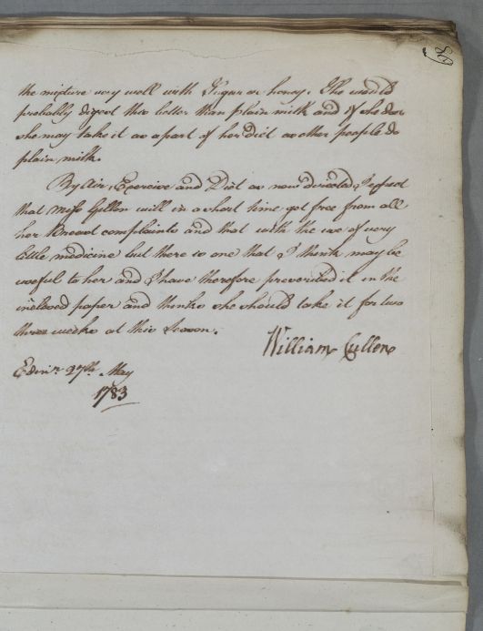 | Summary | Reply headed 'For Miss Katty Gillon'. Machine scribal copy, but the recipe enclosed in Cullen's hand. |