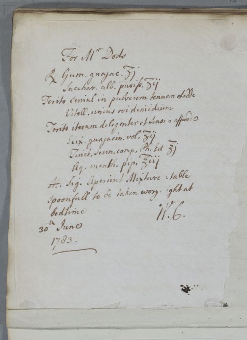 [ID:4653] From: Dr William Cullen (Professor Cullen) / To: Dr / Regarding: Mr Josiah Dods (Josias) (Patient) / 30 June 1783 / (Outgoing)